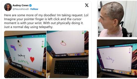 Notably, Neuralink, the brain-computer interface company founded by Elon Musk, recently reported its first female patient, Audrey Crews, successfully performing “mindwriting” using an implanted N1 chip. Audrey was able to write her name and draw shapes such as hearts, flowers, and rainbows purely through thought, as well as scroll pages and type on a keyboard.